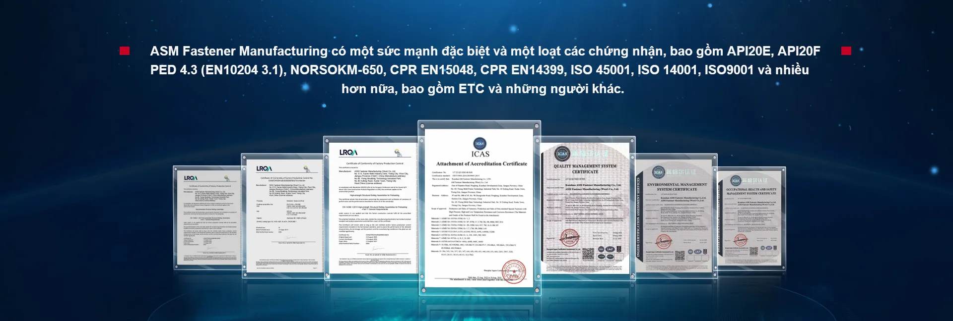 Các chứng nhận của công ty bao gồm ISO 9001: 2000, ISO 14001, ISO 45001, Giấy phép sản xuất thiết bị đặc biệt (Đường ống áp lực) Chứng nhận TS, Norsok M650, EU CE, PED 4.3, CPR 14399, CPR 15048 và EN 10204 3.1, trong số những người khác.